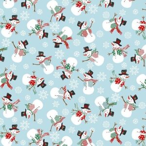 Puuvillakangas 112cm, Pienet joulukuviot, Lumiukot pakkaspäivä