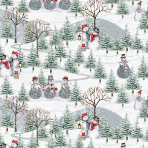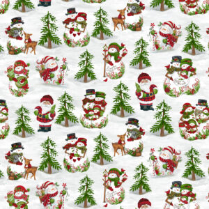 Puuvillakangas, 112cm, Lumiukot metsässä