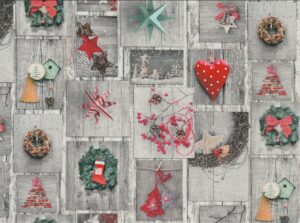 Puuvillakangas, Lev. 112cm, Nostalgia jouluruudut