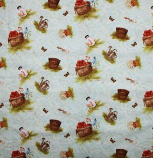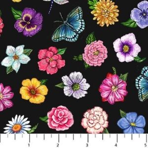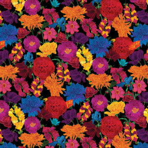Laaja valikoima puuvillakankaita, kuvioina kukat ja kasvit.