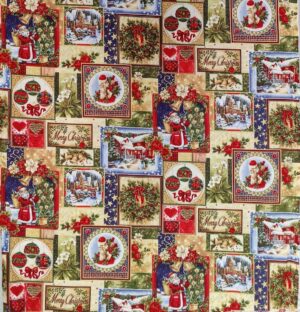 Puuvillakangas, Lev. 112cm, Nostalgia jouluruudut