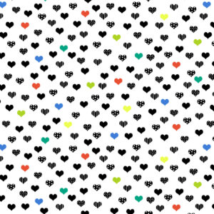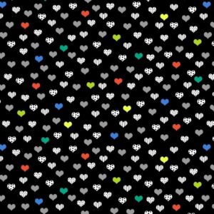 Puuvillakangas Ilona, 112cm, Pienet sydämet musta