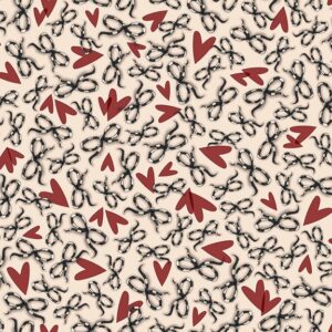 Puuvillakangas, 112cm, SYDÄMET JA RUSETIT