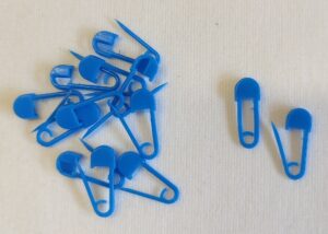 Eri kokoisia hakaneuloja. Aivan pienistä isoihin silmukkapidin hakaneuloihin asti.