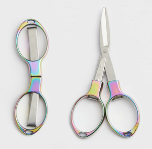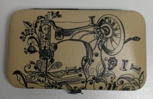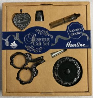 Erilaisia saksia ja leikkureita, ratkojia. Pienet sakset käsityökoriin ja koruompeluun, isot vaatturin sakset kankaiden leikkaamiseen. Kaavapyörä ja nukanpoistaja.