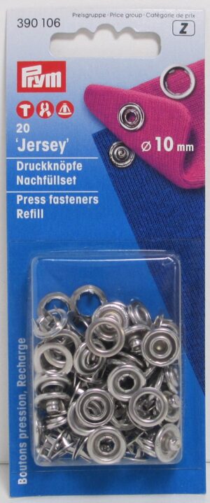 Jersey rengasneppari, 10mm, kirkas täyttöpakkaus, Prym390106