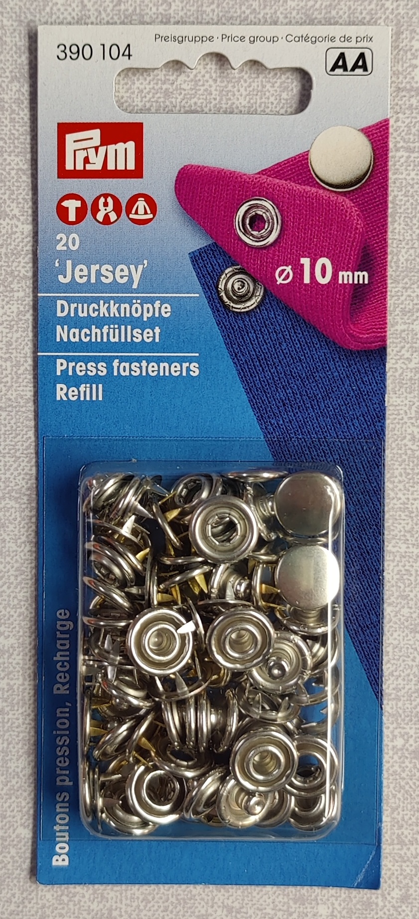 Tuotetunnus (SKU): Jersey kansineppari, 10mm, kirkas täyttöpakkaus, Prym390104 Osasto: