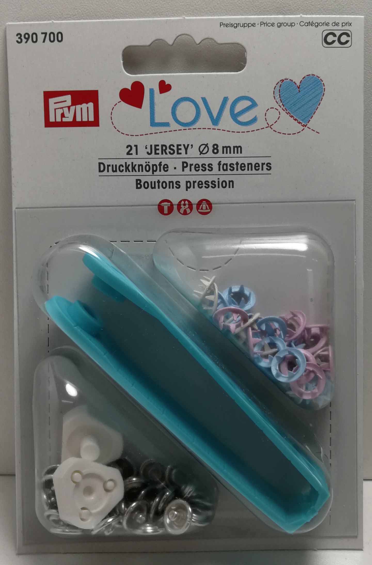 Prym Jerseynepparit, joustaviin ja ohueisiin kankaisiin. Nepparin koko 8mm. 21kpl/pakkaus, värilajitelma pastellin sävyiset. Prym390700