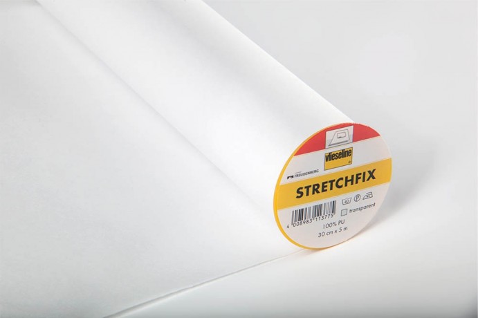 Kaksipuoleinen joustava liimaharso, STRETCHFIX, Lev. 30cm Koostumus: 100% PUPaino: n. 20g /m²Leveys: 30cm Myydään metreittäin tai 5m:n rullassa