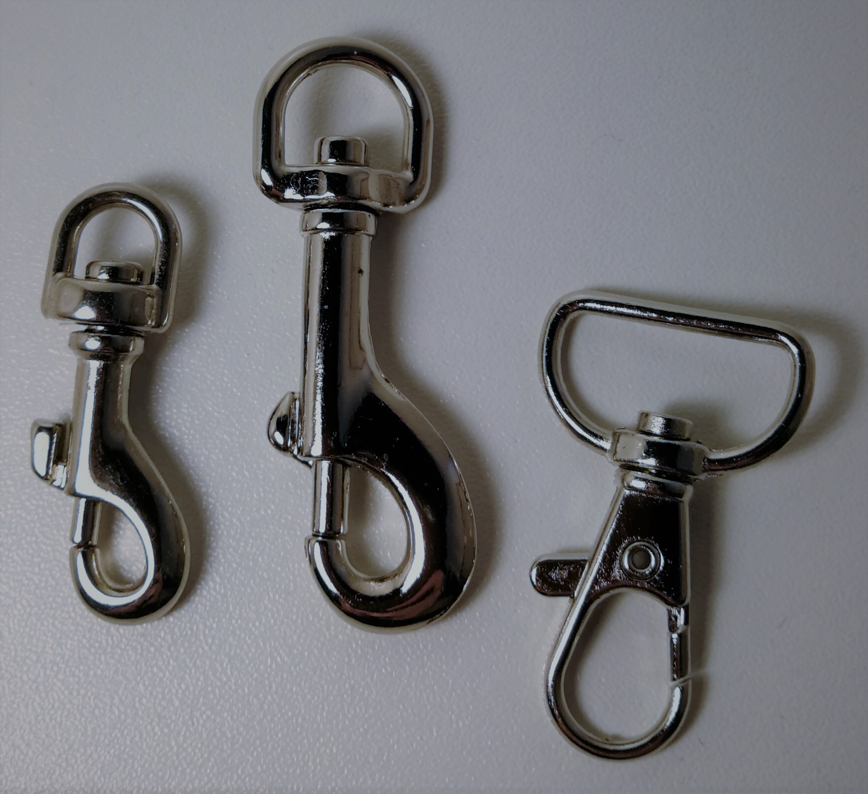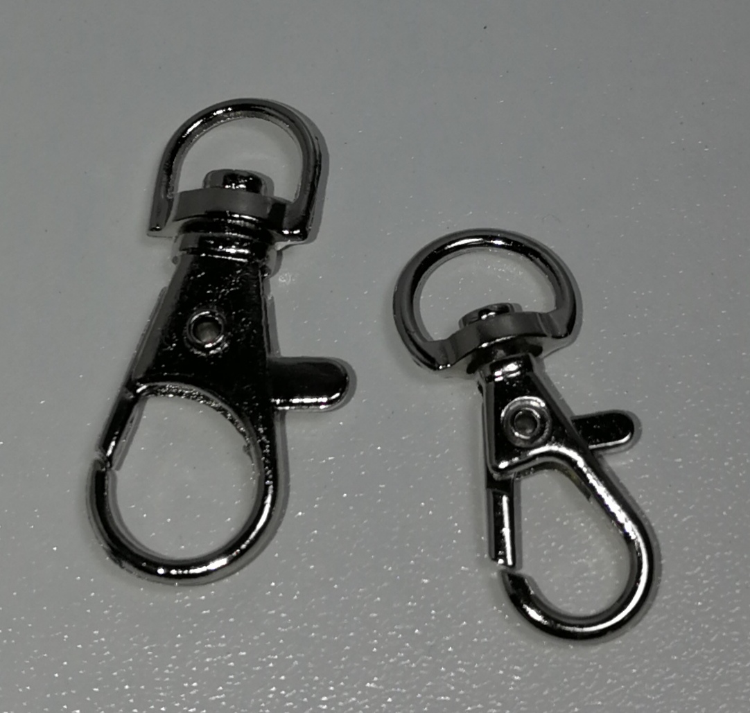 Karbiinihakanen, kromattu, kokonais pituus 40mm tai 55mmOikealla oleva soveltuu n. 20mm nauhalle