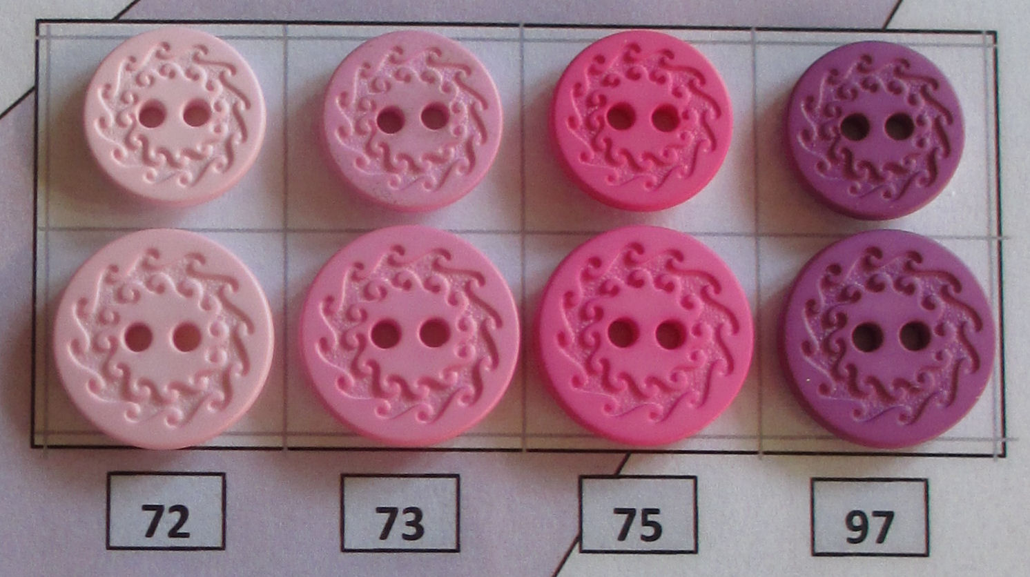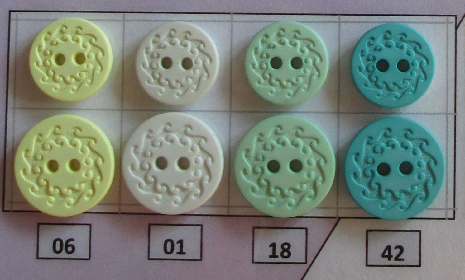 Yksivärinen köynnöksellä kuvioitu nappi esim. lasten neuleisiin Koko 18mm Kestää 60ast. pesun
