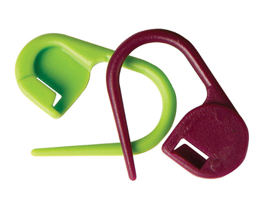 Neuletöiden kerrosten merkkaushakanen, pakkauksessa 30kpl muovisia hakasia. Silmukkamerkki, muovinen hakaneula