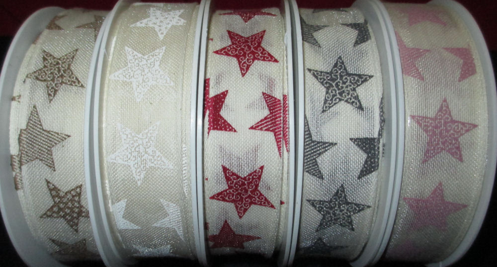 TähtinauhaOhuehkolle puuvillanauhalle painettu tähtikuvioitaNauhan leveys 25mm
